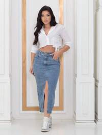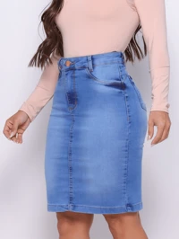 Saia jeans cintura alta Fenda no meio, casual, elegante, simples e elegante, comprimento 90 cm, Tamanho : (36 cintura - 68 cm , quadril - 96cm , ) (38 cintura - 72 cm , quadril - 100 cm , )(40 cintura-76 cm , quadril -104 ) ( 42 cintura - 80 cm ,quadril - 108 cm ) , ( 44 cintura -84 cm , quadril -112 cm ) . ( 46 cintura - 88 cm , quadril - 116 cm ) #3 Mais Vendido