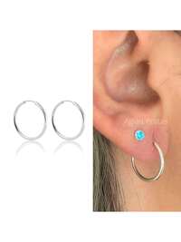 em Banhado em platina Brincos de argola fina