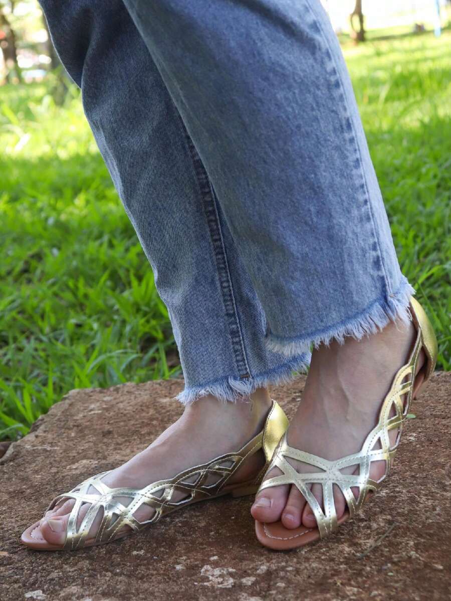 Sapatilha Feminina Dourada Vazada Calcado Mocassim Mulher Moda Menina Bota Sandalia Chinelo
