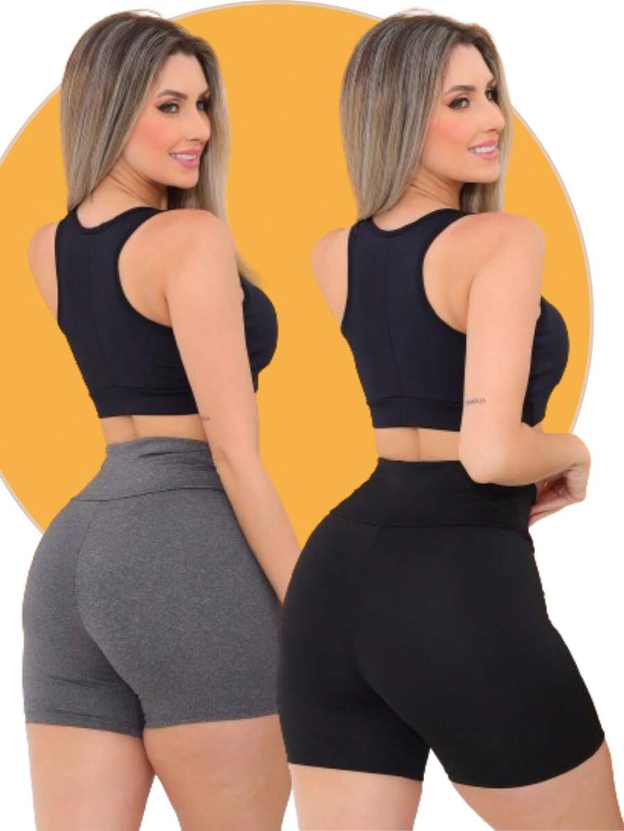 Kit 2 Shorts Legging Feminino Curto Cintura Alta Academia Esportivo