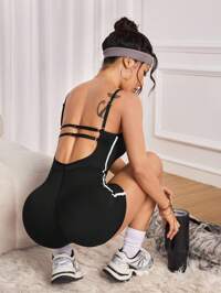 UONNOU SPORTSWEARUONNOU 1 Peça de Modelador Esportivo Feminino de Shorts, Cós Destacável Contrastante, Estilo Camisole Sexy Costas Abertas, Design Sem Mangas, Ajuste Justo, Levantamento de Quadris, Cintura Marcada e Controle Abdominal, Excelente Efeito Modelador, Tecido Tricotado Sem Costura, Adequado para Esportes ao Ar Livre, Ioga, Esportes Leves e Uso Casual Diário, Transporte, Festas e Festivais, Estilo Universal para Todas as Estações. #3 Mais Vendido