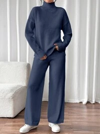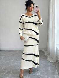 em Tecido de malha Coordenadas de suéter feminino