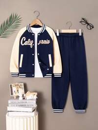 Playful PalsPlayful Pals 2 peças/Conjunto Jaqueta e Calça Casual de Beisebol Estilo Universitário para Meninos Pequenos, Estampa de Letra Bordada, Recorte na Frente com Botões, Gola, Punhos e Barra Ribetados, Adequado para Passeios de Outono/Inverno, Streetwear, Uso Diário, Esportes, Escola, Viagem, Férias #2 Mais Vendido