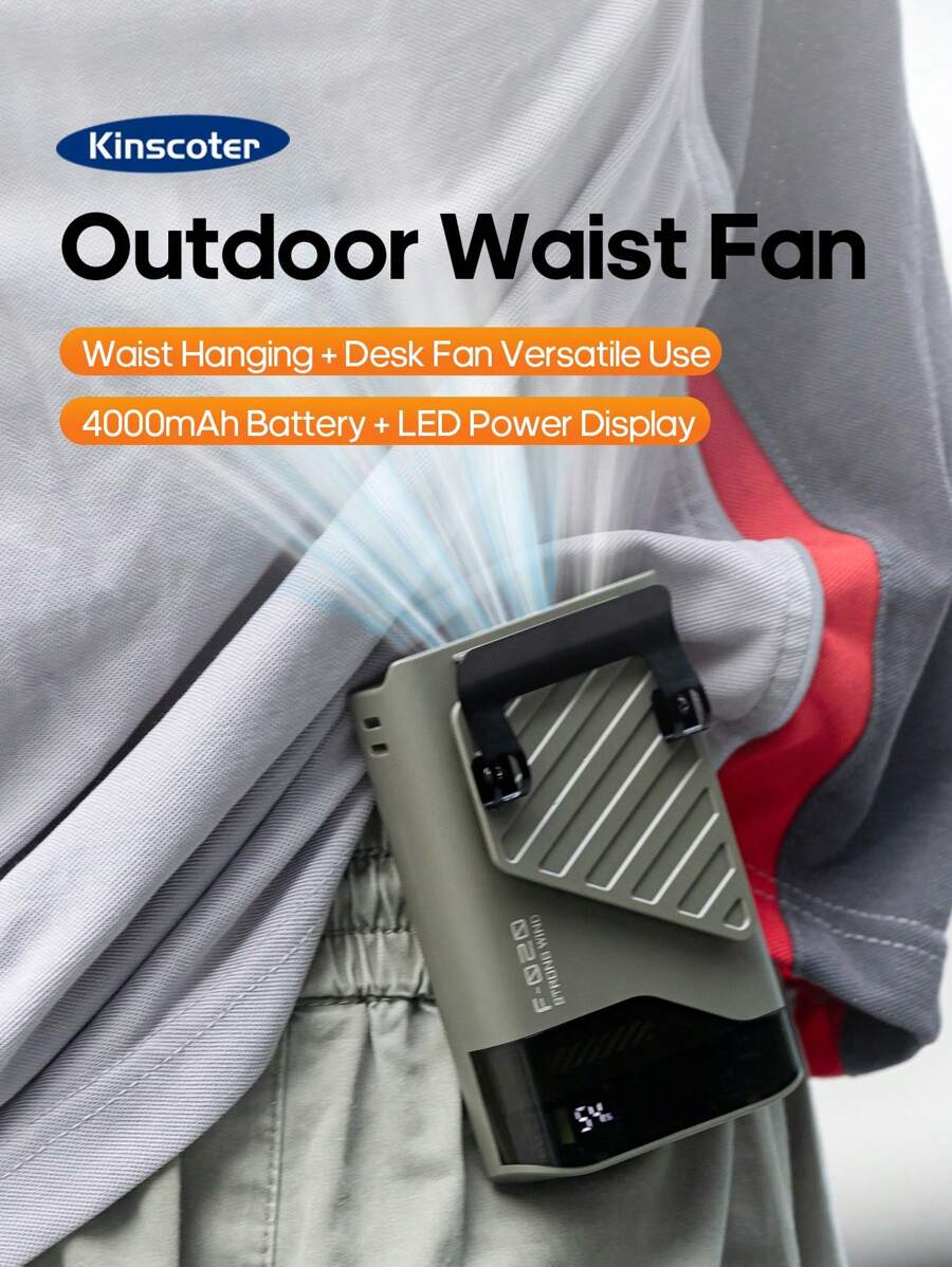 kinscoter 1 Peça Ventilador Portátil Recarregável de 4000mAh para Cintura, Acessórios de Camping, Praia e Viagem, Refrigerador de Ar, Bateria Portátil, Mini Ventilador Pessoal para Pescoço