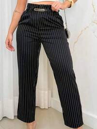 em Listrado Calças Femininas